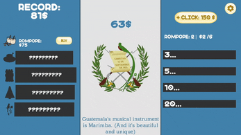 ENG- Discover the wonderful culture of Guatemala by playing Guatemala Clicker! Earn quetzales, learn interesting facts about the country, and buy representative items. This game is available in both English and Spanish.